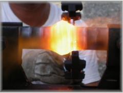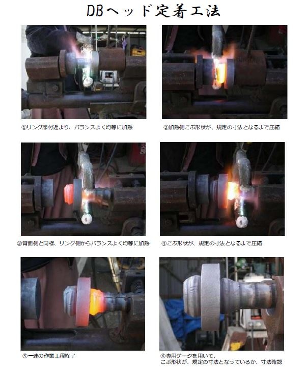 ガス圧接継手は、鉄筋端面同士を突合せ、軸方向に圧力を加えながら、突合せ部分を、酸素・アセチレン炎で加熱し、接合面を溶かすことなく赤熱状態にし、膨らませて接合するガス圧接継手工法。
