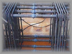 鉄筋にCBセラミックスの裏当てをセットするだけで溶接作業が出来るため、狭所でも容易に行なえる